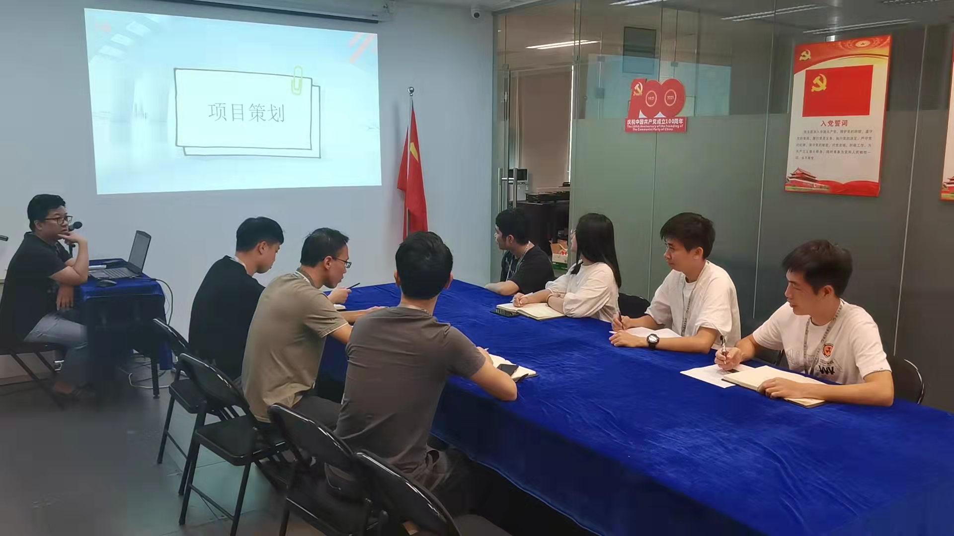 參賽隊(duì)員們進(jìn)行項(xiàng)目討論會(huì),緊鑼密鼓的備戰(zhàn)選題。