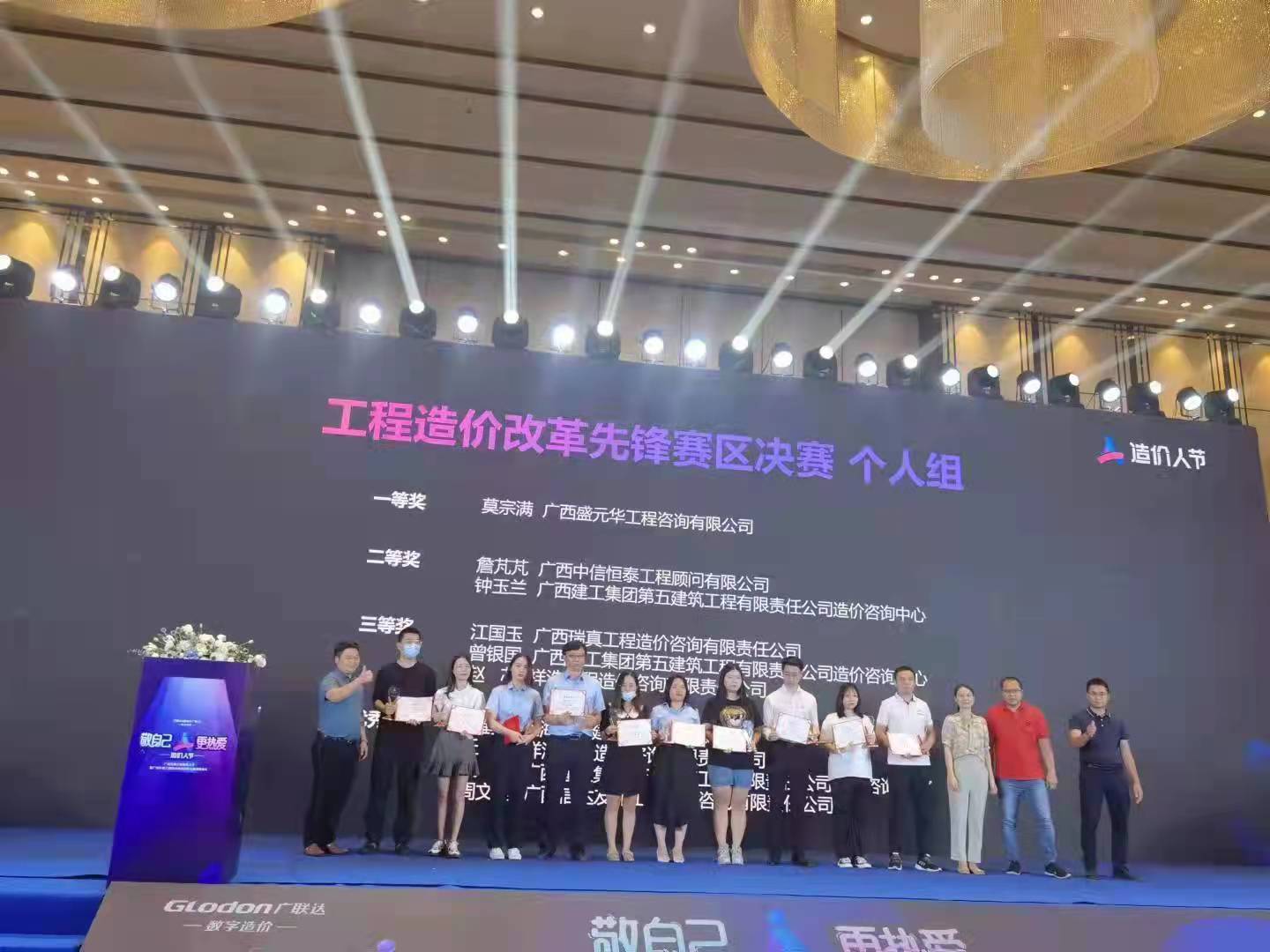 2021年廣西區(qū)第三屆綜合造價(jià)技能大賽(以下簡(jiǎn)稱(chēng)“大賽”)的系列比賽已全部結(jié)束,在9月17日的頒獎(jiǎng)典禮上,公司參賽團(tuán)隊(duì)以?xún)?yōu)異的成績(jī)?cè)诒緦眉寄艽筚愔性俅问斋@榮譽(yù):榮獲工程造價(jià)改革先鋒賽區(qū)個(gè)人組第一名和企業(yè)組優(yōu)秀獎(jiǎng)、企業(yè)數(shù)字化開(kāi)拓者賽區(qū)企業(yè)組三等獎(jiǎng)。